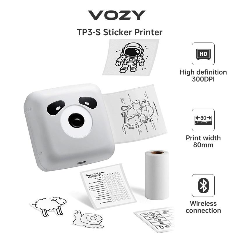 VOZY TP3S Portable Thermal Printer 80mm Mini Bluetooth Sticker Printer For iPhone & Android, Wireless Pocket Picture Printer for School Notes, Journal, DIY, Kids Gifts