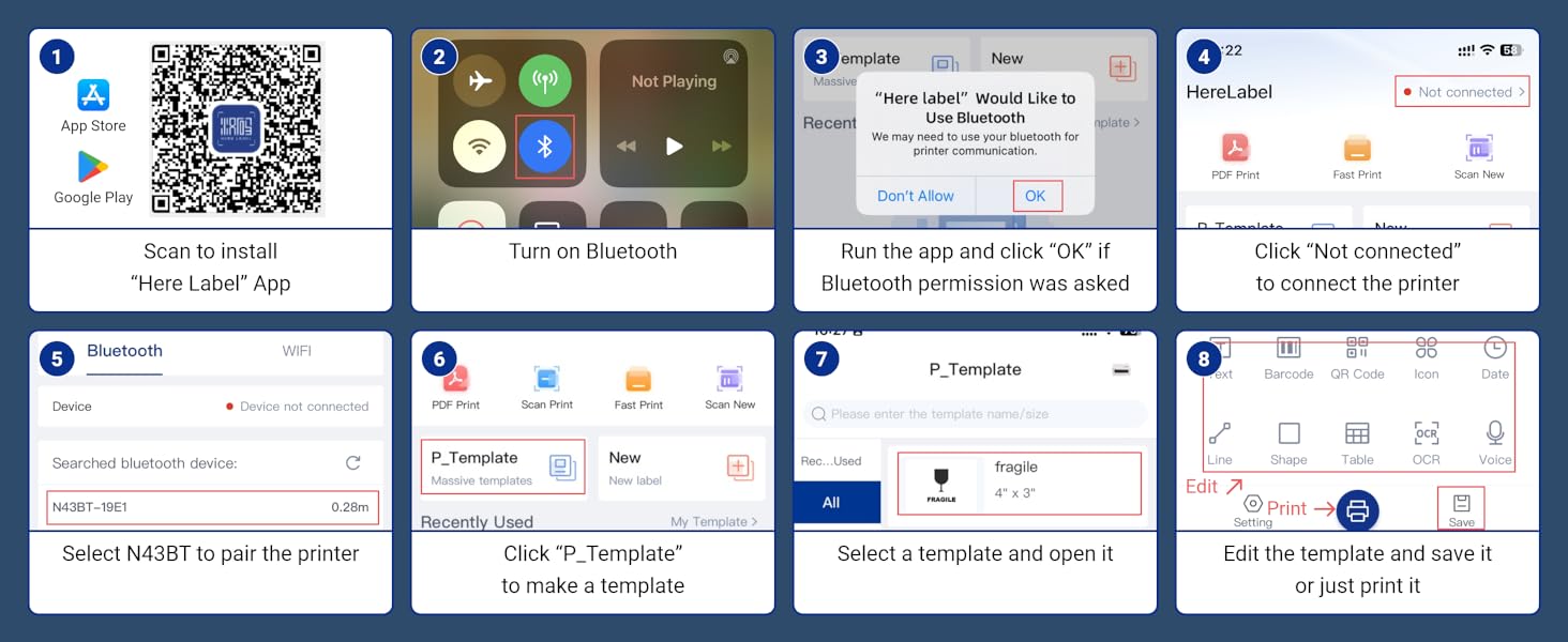 VOZY A8 Thermal Label Printer Bluetooth 3 inch Waybill Printer 80mm Thermal Barcode Printer