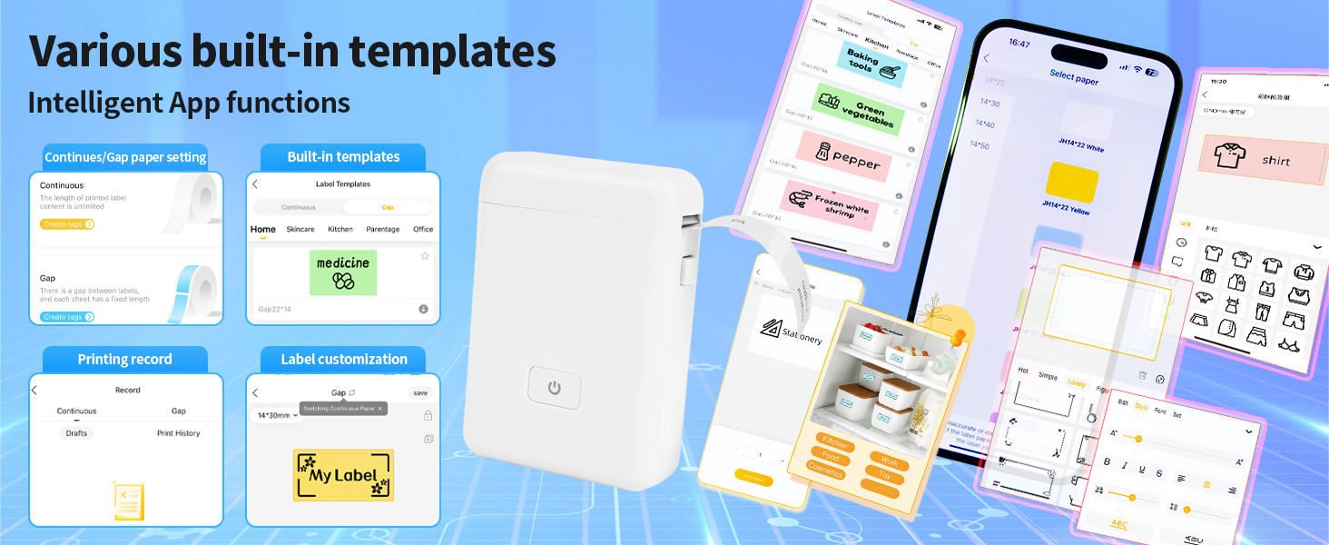 * Small and portable, free APP multi-function printing anywhere.